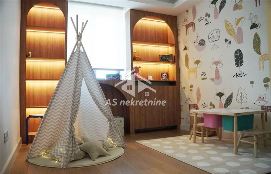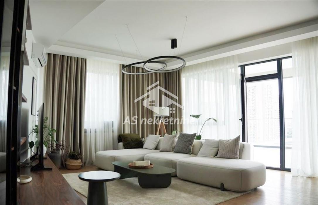 For rent: a deluxe 200 m² five-room apartment in the luxury complex Belgrade Waterfront – BW Scala, located in Luke Celovica Trebinjca Street. Elegantly designed, fully furnished with high-quality furniture and appliances, featuring a spacious terrace, private sauna, and two garage spaces.