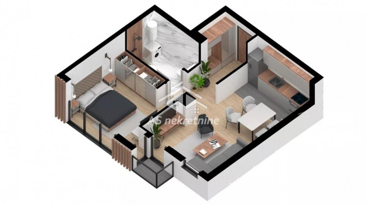 This luxury two-bedroom apartment, covering 48m², is located on the 4th floor of a 6-story building. It is brand new and has never been inhabited, featuring high-quality finishes and a contemporary design.