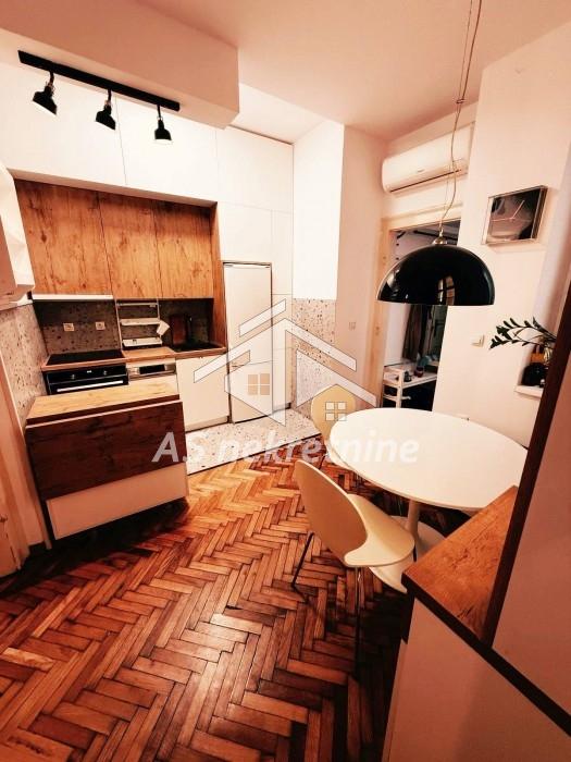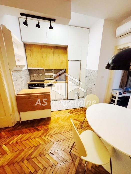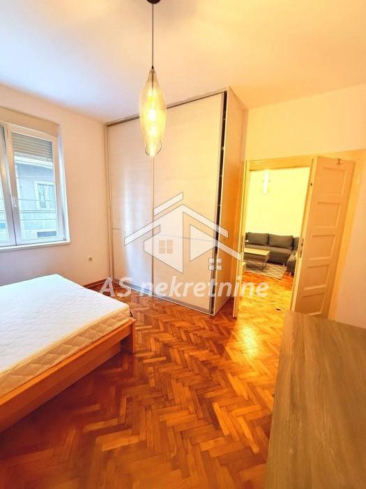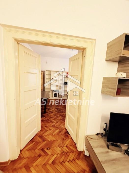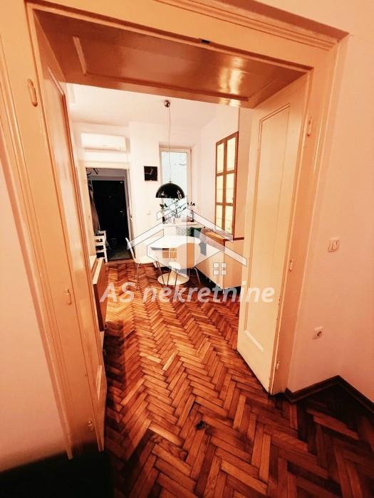 A fully renovated and luxuriously furnished 2.5-room salon-style apartment of 68 m² is available for rent in a quiet and highly desirable part of Vracar, located between Kalenic Market and the Temple of Saint Sava, in Ivana Djaje Street. The apartment is situated on a raised ground floor, which is at the height of a first floor level, in a well-maintained smaller residential building.