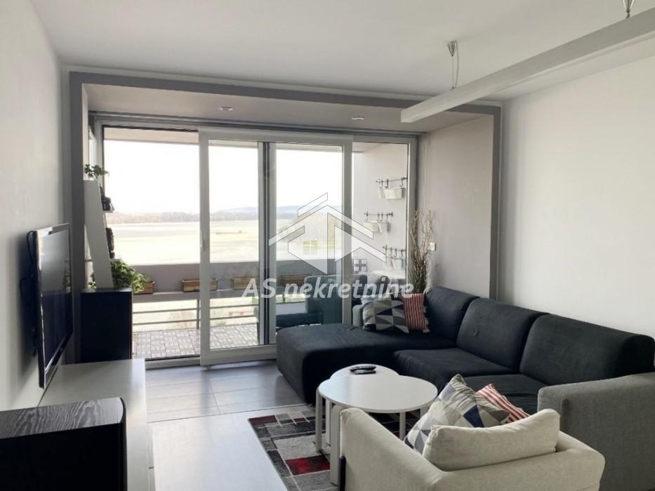An exceptional, fully furnished two-bedroom apartment of 78 m² is available for rent, located on the 11th floor of a well-maintained building on Kej oslobo?enja, in the first row by the river, with a direct and open view of the Danube.