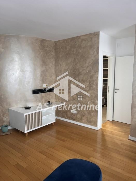 Stan se sastoji od prostrane dnevne sobe sa trpezarijom i kuhinjom, tri spavaće sobe od kojih su dve kompletno opremljene, a treća organizovana kao garderober i radni prostor, kao i dva kupatila – master kupatilo uz glavnu spavaću sobu i drugo kupatilo za preostale sobe. Kuhinja je opremljena Bosch A+++ uređajima, stan se izdaje bez televizora.