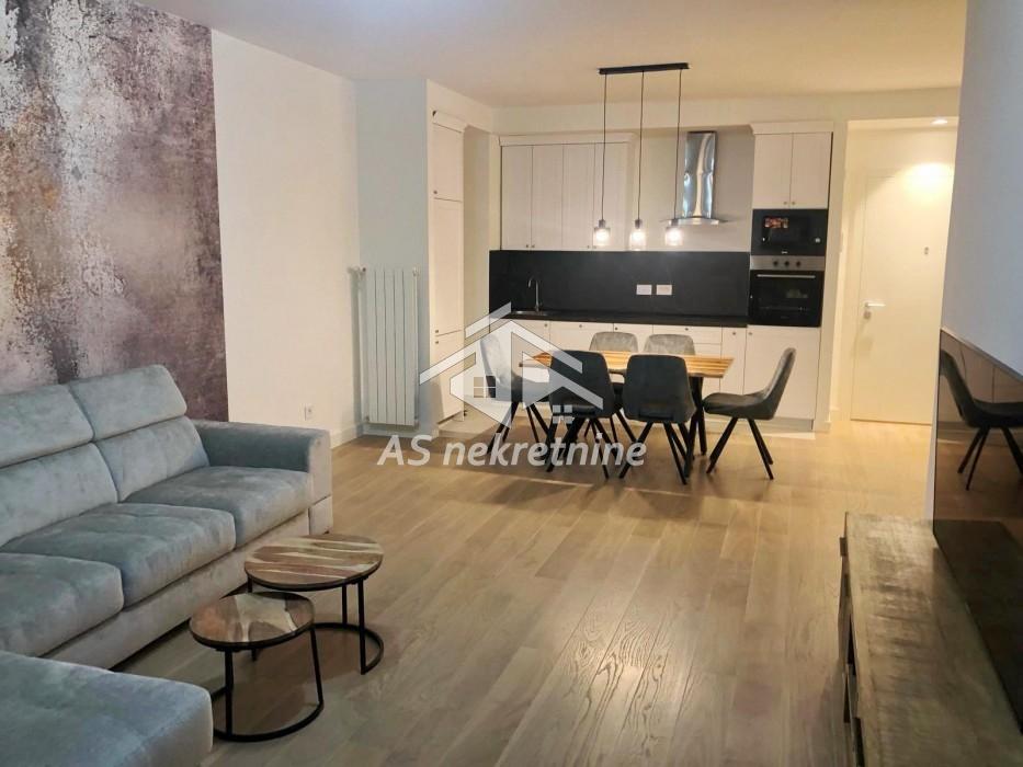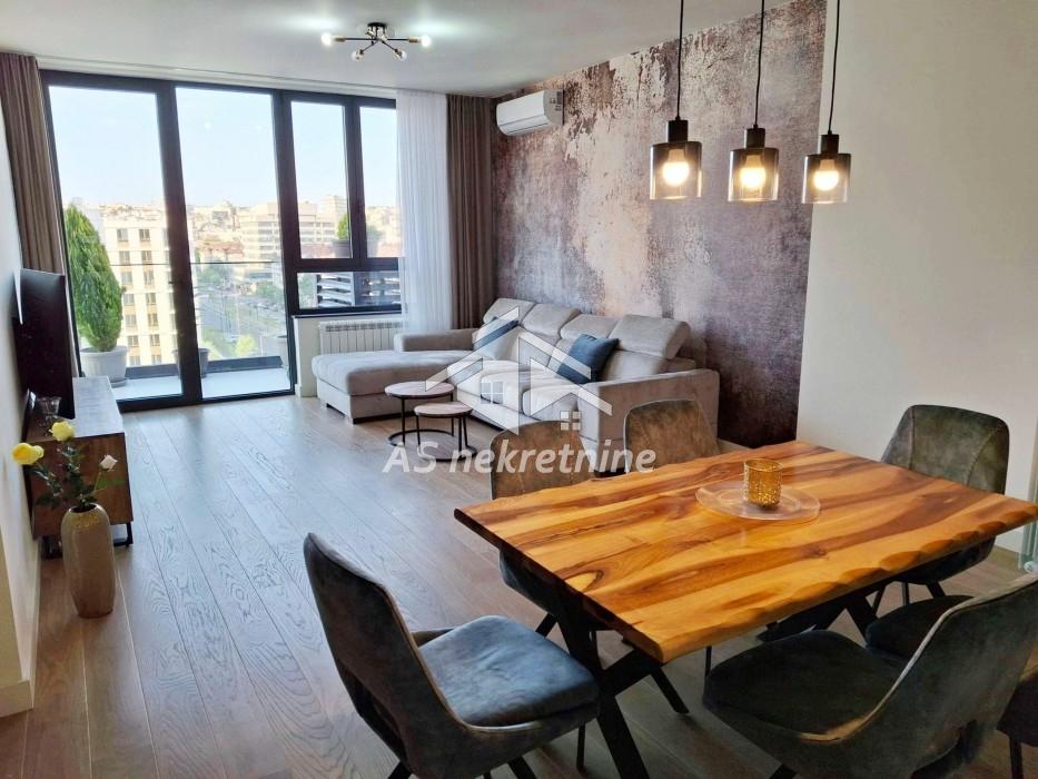Stan se nalazi na sedmom, pretposlednjem spratu moderne zgrade i odlikuje se panoramskim pogledom ka Kula Beograd, Starom gradu i samom kompleksu. Funkcionalnog je rasporeda i sastoji se od prostranog dnevnog boravka sa kuhinjom i trpezarijom, dve odvojene spavaće sobe, dva moderna kupatila, kao i posebne veš prostorije sa mašinom za pranje i sušenje veša. Iz dnevnog dela izlazi se na terasu koja dodatno naglašava osećaj prostora i pruža prijatan ambijent za boravak.