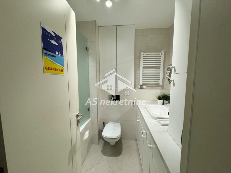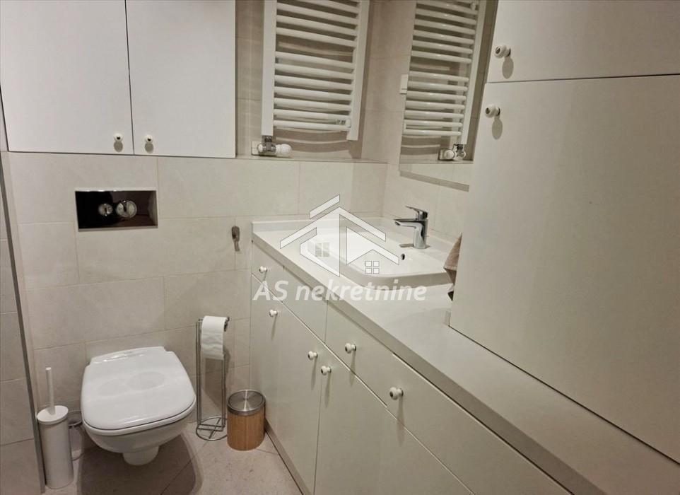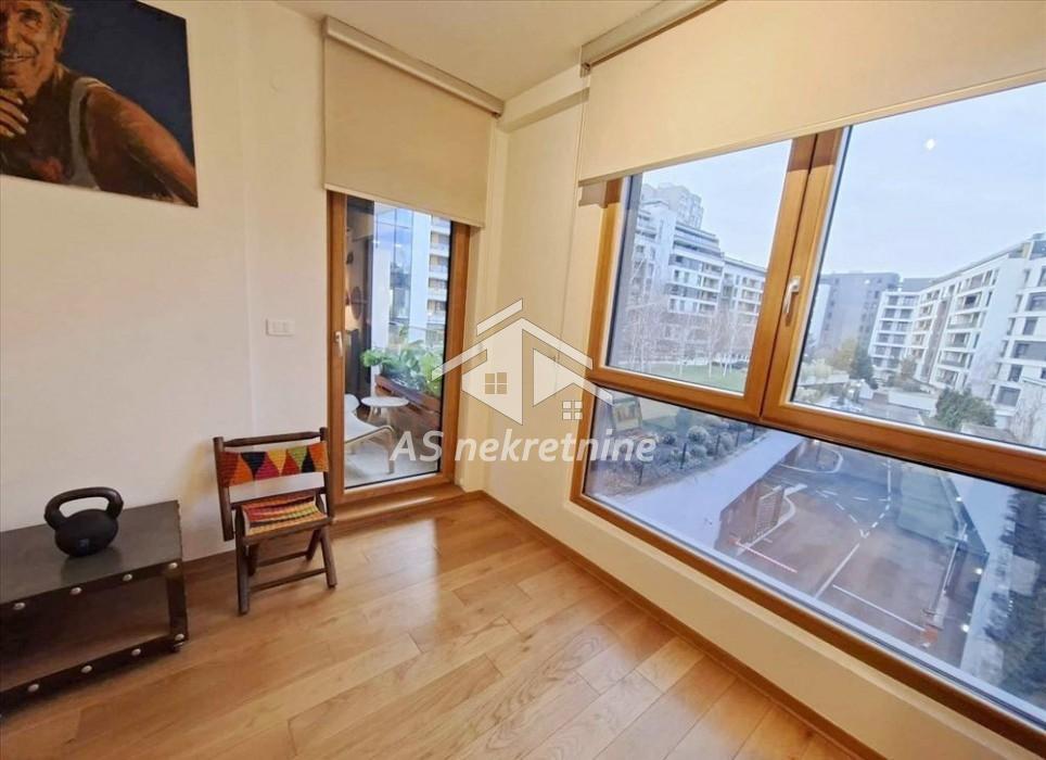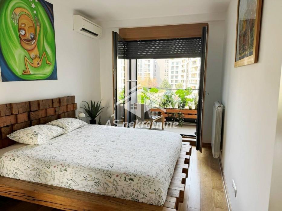 Izdaje se moderan, potpuno namešten dvosoban stan površine 63 m² u luksuznom stambenom kompleksu Central Garden, u ulici Starine Novaka. Stan se nalazi na prvom spratu zgrade novije luksuzne gradnje sa ukupno osam spratova i odlikuje se funkcionalnim rasporedom i prijatnim ambijentom.