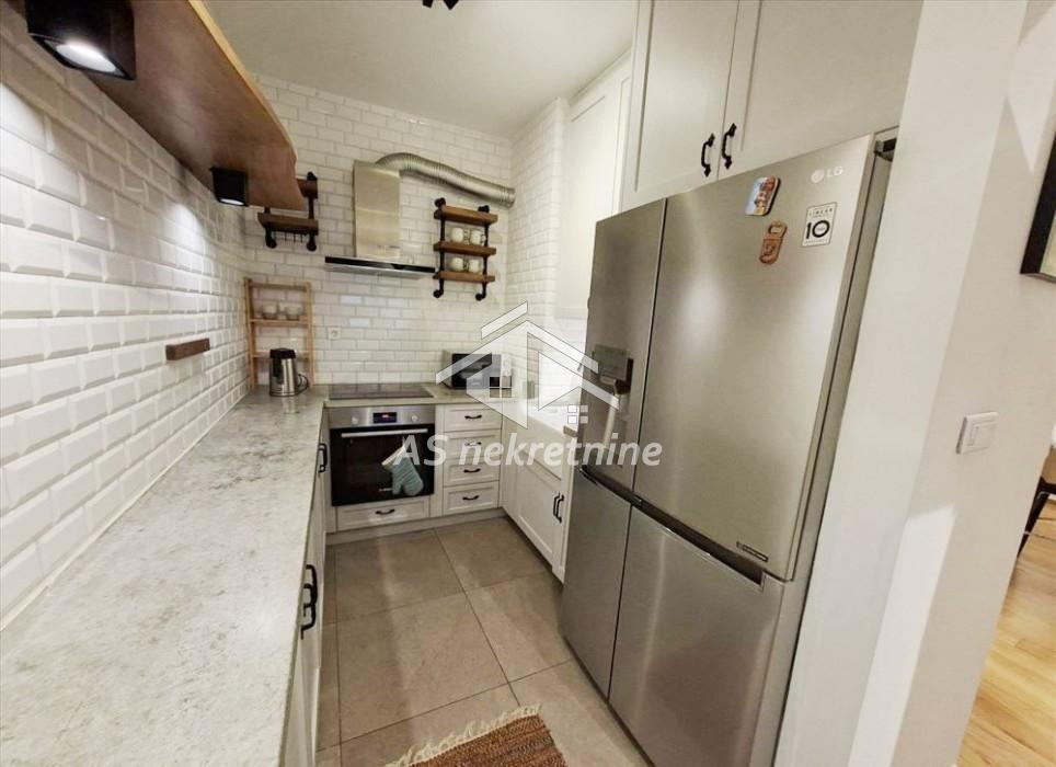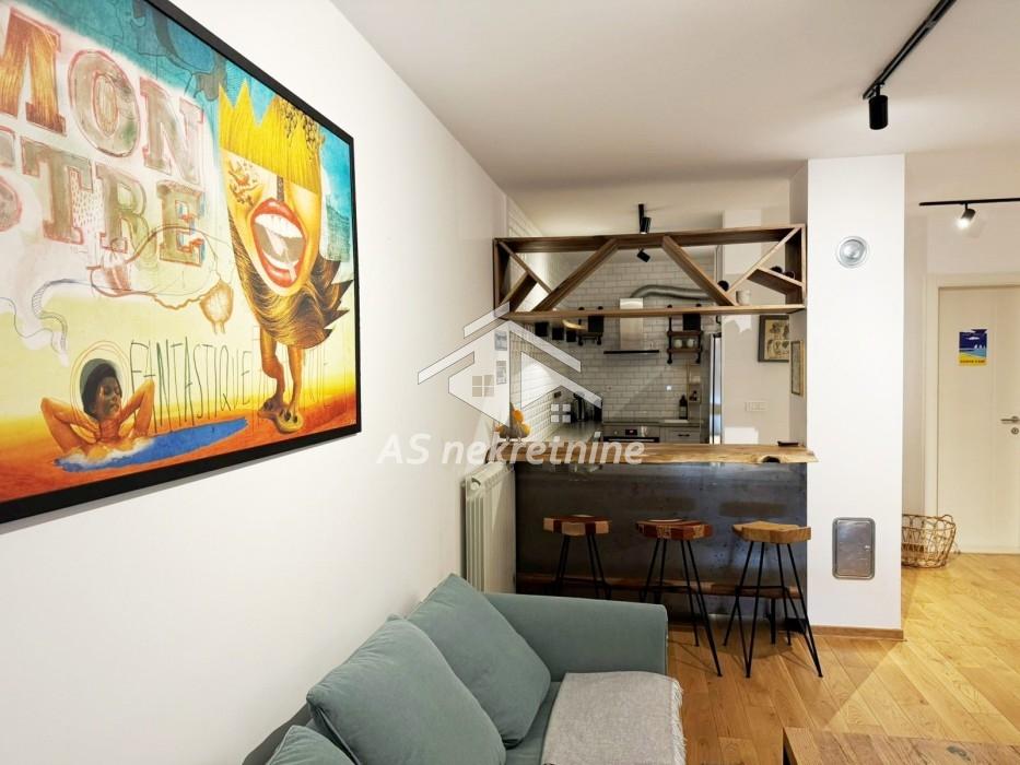 Stan je potpuno opremljen kvalitetnim nameštajem i savremenim uređajima, a sastoji se od dnevnog boravka sa kuhinjom i trpezarijom, spavaće sobe, kupatila i terase. Zahvaljujući dobroj organizaciji prostora i velikim prozorima, stan je svetao i veoma prijatan za boravak.