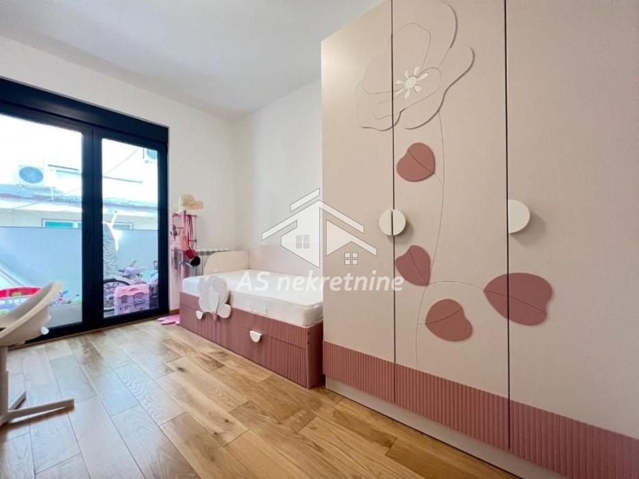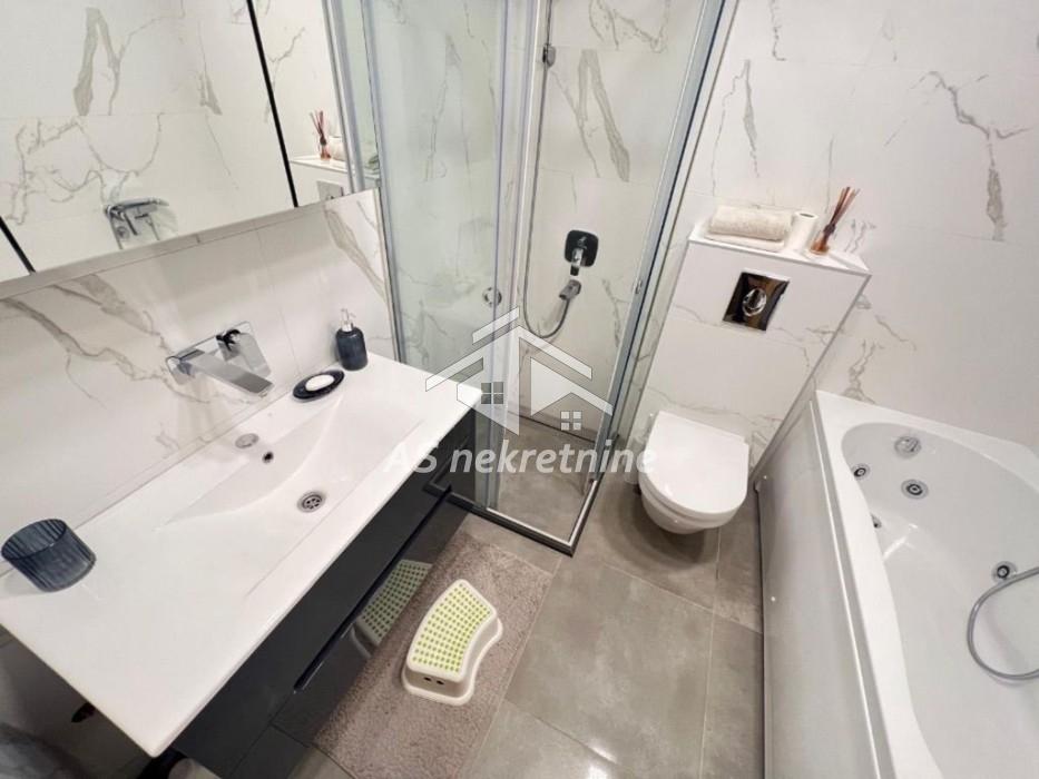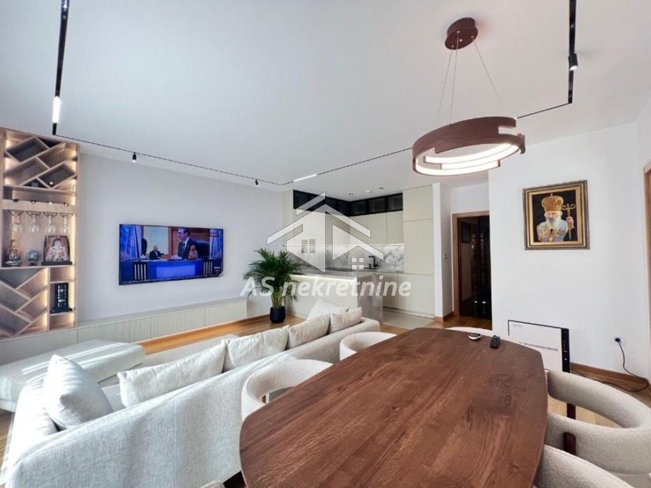 Stan je južno orijentisan, izuzetno svetao, uređen najkvalitetnijim materijalima i opremljen smart home sistemom za potpunu udobnost i kontrolu prostora.